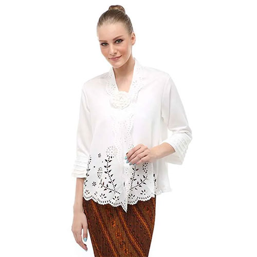Semakin mengenal fungsi laser cutting kain, maka anda akan semakin mengenal bahwa teknik satu ini sangat berguna untuk fashion product semakin kece. Seperti kebaya katun yang memiliki motif laser cutting seperti gambar berikut. Bentuknya yang beda dari lainnya, menunjukkan bahwa teknik laser cutting kain ternyata memiliki pilihan media yang juga cukup luas untuk memenuhi kebutuhan anda. Nggak hanya pada hijab, taplak ataupun felt. Teknik laser cutting kain juga dapat memenuhi kebutuhan ide anda pada model kebaya yang fashionable seperti ini.