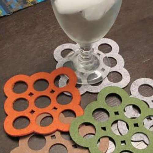 Selain taplak dan hijab, laser cutting kain juga bisa anda aplikasikan pada felt tatakan gelas seperti ini lho! Menarik kan? Tatakan gelas seperti ini tentunya juga cukup menarik dijadikan hadiah untuk ibu atau sahabat anda di momen ulang tahun atau pernikahannya. So, laser cutting kain justru nggak akan membatasi inovasi anda pada suatu produk atau custom gift yang menarik. Justru, sebagai salah satu jasa laser cutting Surabaya, laser cutting kain juga mempunyai manfaat untuk mendukung inovasi anda terhadap sebuah produk.