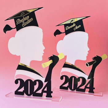 Anak-anak akan merasa lebih dihargai jika piala yang mereka terima mencerminkan kepribadian atau minat mereka. Anda bisa memesan piala akrilik dengan bentuk yang lucu seperti karakter kartun, alat musik, atau bola sepak—sesuai hobi si kecil. Atau Anda juga bisa memberikan custom trophy atas prestasi siswa atau anak dengan design simbol topi toga seperti contoh berikut.