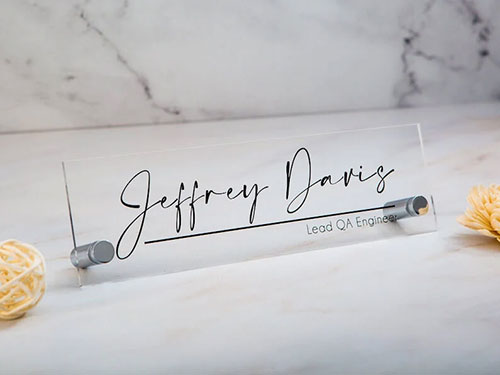 Untuk menyongsong tahun baru dengan goals perusahaan yang baru, nggak ada salahnya anda memberikan laser engraved acrylic name plate seperti ini. Karyawan anda yang berhasil “level-up” tentunya semakin berkesan menerima hadiah unik dan personalized seperti ini.
