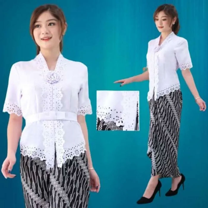 Siapa yang nggak nyangka kalau motif cantik pada kebaya ini juga merupakan hasil laser cutting? Motif-motif seperti ini dapat anda hasilkan melalui proses laser cutting. Selain memberikan aksen yang berbeda, kebaya hasil laser cutting akan memberikan kesan yang anggun seperti pada gambar berikut. Hasil laser cutting juga menghasilkan motif yang lebih presisi karena mesin laser cutting mampu memotong hingga detail sesuai dengan motif yang anda inginkan.